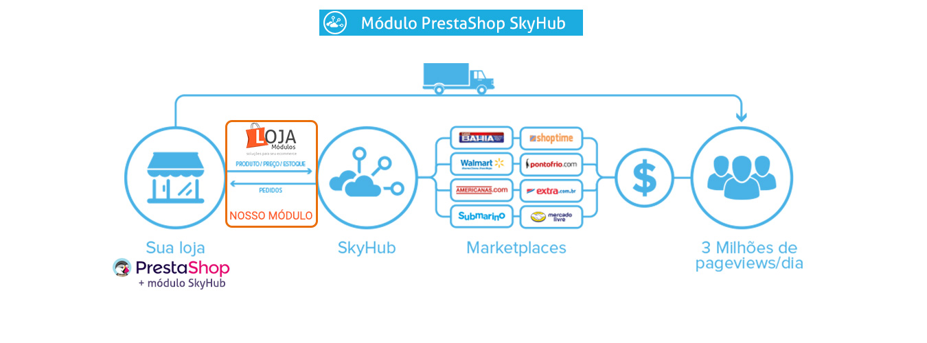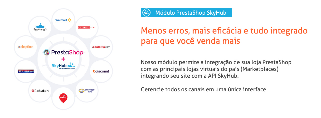 | Sincronização automática de pedidos recebidos pela SkyHub dos marketplaces para sua loja Prestashop |